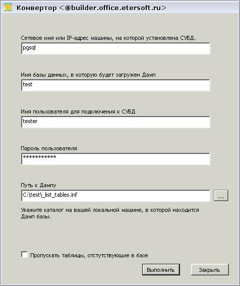 Здесь так же указываются параметры подключения к базе данных и путь к CSV-Дампу – путь к файлу _list_tables.inf, который содержит вспомогательную информацию.