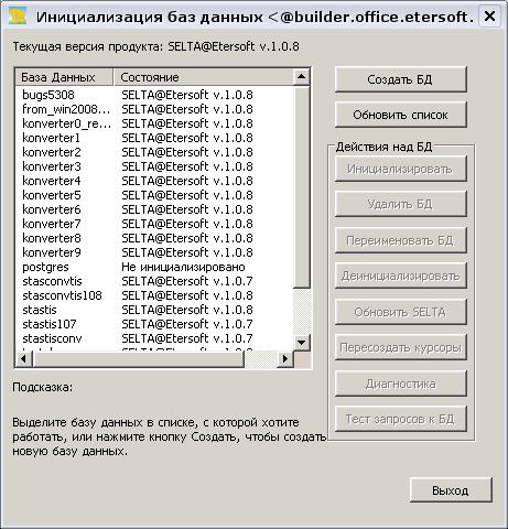 – Не инициализировано – база не содержит элементов SELTA@Etersoft